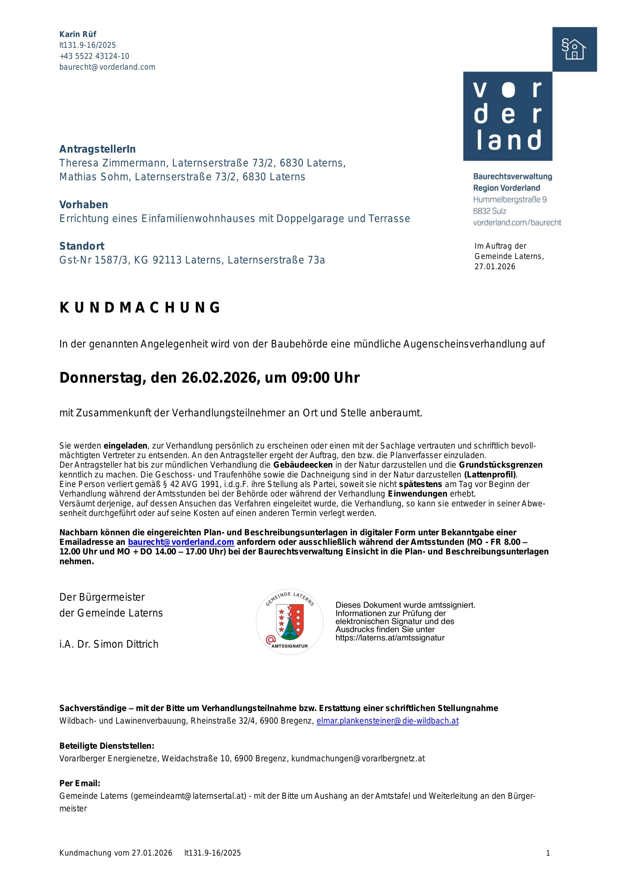 Kundmachung Bauverhandlung